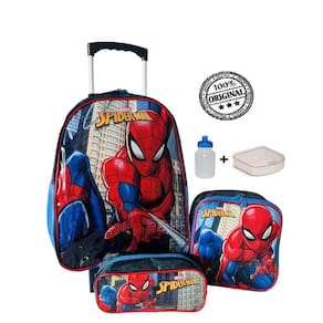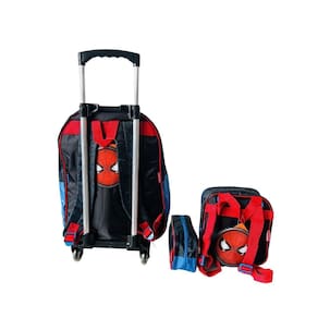 Kit mochila homem aranha escolar de rodinhas, lancheira e estojo +potes