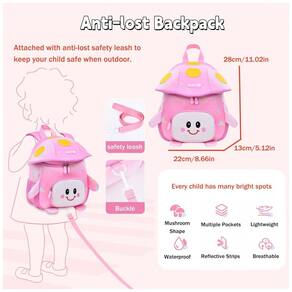 Modelo: Armbq Toddler Backpacks for Girls Boys Kids Anti-Lost Daycare Bag for School Cute Kindergarten Preschool Bookbag Tipo de produto: Mochila infantil com guia de segurança Formato/tema: Mochila infantil com elementos de cogumelo Faixa etária indicada: Crianças em idade pré-escolar Material principal: Tecido sintético impermeável e respirável Acabamento interno: Forro têxtil simples para itens leves Capacidade aproximada: 13 L Dimensões: (C): 22 cm x (L): 13 cm x (A): 28 cm Peso do produto: 0,47 kg Peso do pacote (produto + embalagem): 0,47 kg