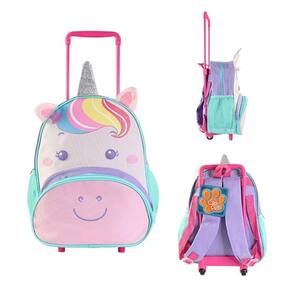 Mochila Infantil Com Rodinhas Unicornio Bolsa Escolar Para Criança Para Estudar Roxa