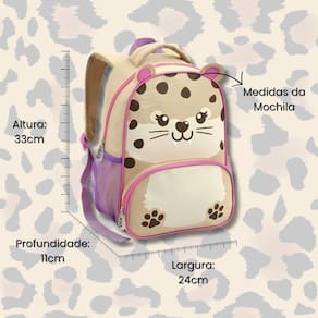 Mochila Infantil Creche Escola 13 Oncinha Animais Fofa Bege