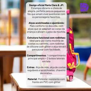 - **Espaço Amplo**: Ideal para acomodar livros, brinquedos e outros itens essenciais para a escola ou passeios.