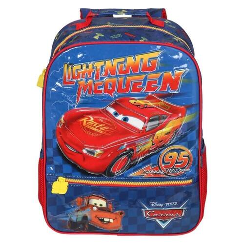 Mochila 16 Carros R Relâmpago Mcqueen Xeryus Em tamanho 16, é produzida em poliéster resistente. Painel frontal em PVC Cristal 3D estampado Bolso frontal com zíper tratorado Bolso telado nas laterais. Puxadores personalizados. Compartimento amplo para armazenagem dos materiais.
