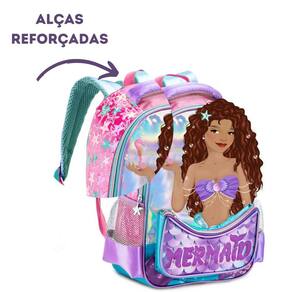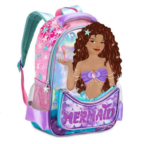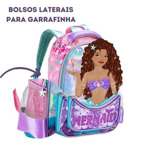 A estampa da sereia morena na mochila é deslumbrante, com cores vibrantes e detalhes encantadores que remetem ao fascínio do oceano. As alças são ajustáveis e acolchoadas, proporcionando conforto e facilidade no transporte. O fechamento em zíper é prático e seguro, mantendo os itens protegidos.