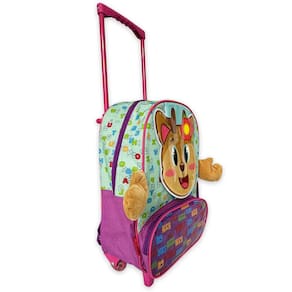 Mochila Infantil Escolar de Rena Rodinhas Mochila de rodinhas para crianças, bem espaçosa e com bolso frontal, tem trava para alça das rodinhas de silicone, bolsos laterais de redinha para garrafa e alças acolchoadas para carregar nas costas. Uma fofura com estampa divertida em relevo de Rena e detalhe das patinhas em pelúcia. Sua criança vai ficar mais fofa e charmosa indo para escolinha com essa linda mochila.