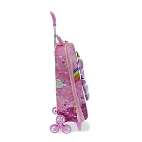 Mochila com Rodas Escolar Cute Unicorn Sweet - Maxtoy By Diplomata. Uma mochila que salta aos olhos Esta é verdadeiramente a sensação que temos quando nos deparamos com este magnífico produto com estampa em 3D, termoformado em EVA, criado pela Maxtoy. Nossos pequeninos sentem-se parte do universo dos brinquedos, inteirando-se de forma divertida com os mais impactantes personagens infantis da atualidade. Um outro diferencial extraordinário das mochilas Maxtoy são as rodinhas triplas em cada lado. Este sistema possibilita a subida de escadas com facilidade e mínimo esforço. Outras características são: Alça para as mãos; Fecho em zíper; Impermeabilidade; Leveza; Alta resistência; e Fácil limpeza; Composição: Estrutura em EVA 80% e Poliéster 20%; Base em PVC; e Carrinho em alumínio.