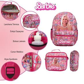 Mochila Infantil Feminina Barbie Costas Lancheira Estojo