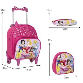 Mochila Infantil Feminina Pequena Princesas Rodinha Passeio