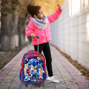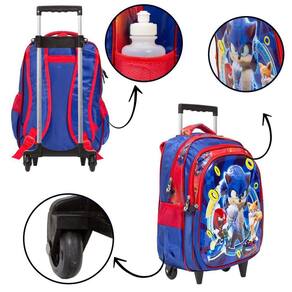Mochila Escolar Infantil Sonic Rodinhas possui alça de mão reforçada. Agora você pode levar sua mochila no seu dia a dia ou acompanhar você na escola. Sua abertura maior se dá por zíper com puxador. Na parte de dentro possui amplo espaço para a guardar diversos materiais como cadernos, livros e estojos. Na parte da frente, possui bolso com zíper para a guardar pertences de menor tamanho.