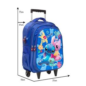 Mochila Escolar Infantil Stitch Rodinhas possui alça de mão reforçada. Agora você pode levar sua mochila no seu dia a dia ou acompanhar você na escola. Sua abertura maior se dá por zíper com puxador. Na parte de dentro possui amplo espaço para a guardar diversos materiais como cadernos, livros e estojos. Na parte da frente, possui bolso com zíper para a guardar pertences de menor tamanho.