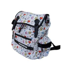 Mochila Infantil Miniso Brasil Mochila Branca de Costa Infantil Tipo Saco Personagens BT21 em Poliéster 32x26x13CM