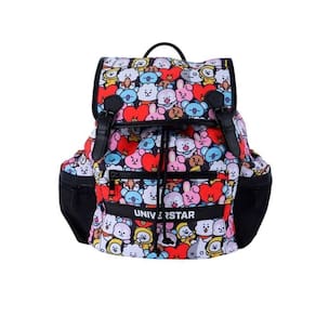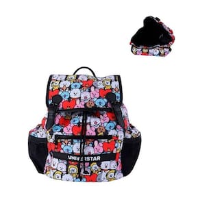 Mochila Infantil Miniso Brasil Mochila Preta de Costa Tipo Saco Personagens BT21 em Poliéster 32X26X13CM Preto
