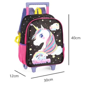 Mochila Infantil Rodinha Carrinho Unicórnio Menina Violeta