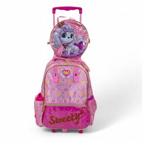 Acompanha uma linda lancheira com opção de transportar tiracolo, nas costas, encaixada no puxador ou presa na frente da mochila do jeito que gostar. Tamanho grande e amplo espaço.
