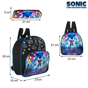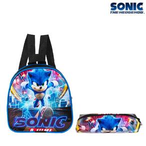 Kit Mochila Escolar Infantil Pequena do Sonic De Costas, acompanha lancheira e estojo. Possui alça de mão reforçada. Agora você pode levar sua mochila no seu dia a dia ou acompanhar você na escola. Sua abertura maior se dá por zíper com puxador. Na parte de dentro possui espaço para a guardar diversos materiais como cadernos, livros e estojos. Na parte da frente, possui bolso com zíper para a guardar pertences de menor tamanho.
