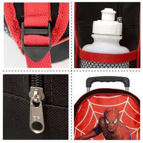 Kit Mochila Escolar Infantil Homem Aranha Rodinhas, acompanha lancheira e estojo. Possui alça de mão reforçada. Agora você pode levar sua mochila no seu dia a dia ou acompanhar você na escola. Sua abertura maior se dá por zíper com puxador. Na parte de dentro possui amplo espaço para a guardar diversos materiais como cadernos, livros e estojos. Na parte da frente, possui bolso com zíper para a guardar pertences de menor tamanho e bolsos laterais.