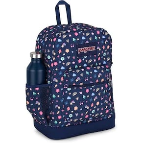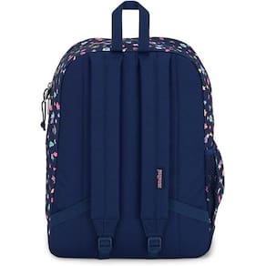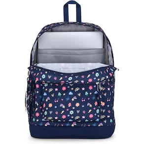 Mochila Jansport Cross Town Plus Slice of Fun Azul A mochila oferece amplo espaço com compartimento principal e bolso frontal organizado. Possui capa acolchoada para laptop de 15, alças de ombro e painel traseiro acolchoados para mais conforto. Conta ainda com bolso lateral para garrafa, base reforçada, alça de mão em rede e puxadores com cordão, unindo durabilidade e praticidade.
