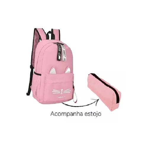 Mochila Escolar Juvenil de Gatinho Rosa De Costas. Agora você pode levar sua Mochila Escolar Juvenil De Gatinho no seu dia a dia ou acompanhar você na escola.Itens que possui: Estampa no bolso frontal, Zíper metálico, Bolso Lateral, EstojoMedidasMochila: Altura: 41cm Largura:16 cm Comprimento: 20 cmEstojo: Altura: 7 cm Largura: 26 cm Comprimento: 6cm