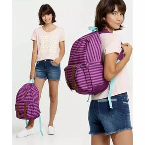 Mochila juvenil listras com detalhes em fivela - Lilás