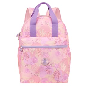 A mochila possui um compartimento principal amplo para acomodar itens escolares, além de um bolso frontal com fechamento em zíper para acesso rápido a pequenos objetos As alças acolchoadas e ajustáveis proporcionam conforto no transporte, enquanto os detalhes personalizados