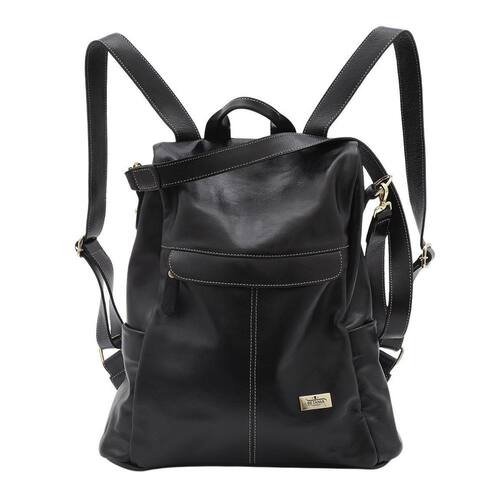 Feita à mão em couro. Tem o espaço interno grande e amplo, comporta Notebook e vários cadernos universitários e ideal para quem leva muitas coisas no dia-a-dia. Cor: Preto Alças: 2 fixas ajustáveis. Bolsos internos: Ela possui 3 bolsos internos. 1 grande com zíper e 2 pequenos para celular e chaves. Bolsos externos: 2 bolsos externos na frente, 1 com zíper e outro grande com fechamento por imã magnético. Nas costas tem 1 bolso externo pequeno. Divisórias: Não. Material: Couro.