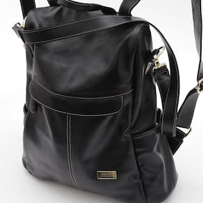 Feita à mão em couro. Tem o espaço interno grande e amplo, comporta Notebook e vários cadernos universitários e ideal para quem leva muitas coisas no dia-a-dia. Cor: Preto Alças: 2 fixas ajustáveis. Bolsos internos: Ela possui 3 bolsos internos. 1 grande com zíper e 2 pequenos para celular e chaves. Bolsos externos: 2 bolsos externos na frente, 1 com zíper e outro grande com fechamento por imã magnético. Nas costas tem 1 bolso externo pequeno. Divisórias: Não. Material: Couro.