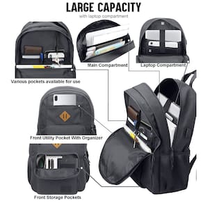 A mochila para laptop de viagem de grande capacidade KEOFID com porta de carregamento USB é uma mochila prática e clássica. Adequado para laptops, pastas de arquivos, todos os carregadores e outros acessórios. Os tipos de compartimentos e bolsos atendem a todas as suas necessidades, com um bolso oculto anti-roubo para manter seus itens importantes seguros. Excelente mochila de trabalho e viagem. É uma boa opção de mochila para se deslocar. - Material e tamanho: a mochila para laptop KEOFID é feita de tecido resistente à água e ao desgaste, proporcionando um exterior robusto e chique. O tamanho da mochila é de 17,3* 12,6* 7,2 polegadas, fácil de organizar todos os itens pessoais e cabe em laptops de até 15,6 polegadas. - Design clássico: um total de 4 compartimentos e dois bolsos laterais, compartimento principal com bolso para laptop de 15,6 polegadas e uma capa acolchoada extra para tablets ou Kindle, podem armazenar livros e arquivos comerciais e ainda ter espaço para as necessidades diárias. O compartimento frontal com organizador e 2 bolsos frontais oferecem bastante capacidade para a organização. 2 bolsos laterais elásticos podem acomodar garrafas de diferentes tamanhos. - Multifuncional: nossas mochilas com uma porta de carregamento USB embutida são fáceis de carregar seu telefone quando estiver em trânsito (não inclui o banco de energia). Com um cinto de bagagem no painel traseiro, é fácil colocar a alça de bagagem durante a viagem. Um bolso anti-roubo escondido para proteger seus itens importantes. - Uso: esta mochila para laptop resistente à água será uma ótima mochila para a faculdade. Também como mochila de viagem casual para viagens, mochila de trabalho para negócios.