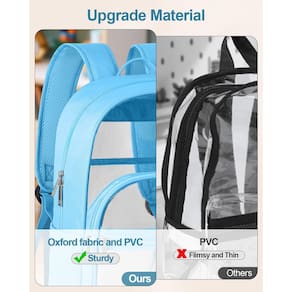 Grande capacidade: o tamanho da mochila transparente é de 43 x 19 x 32 cm. Um compartimento principal de grande capacidade, um pequeno bolso interno, dois compartimentos frontais e dois bolsos laterais de malha, que podem armazenar seus livros, laptop, notas, celular, guarda-chuva, garrafa de água e outros itens. Esta bolsa transparente é espaçosa o suficiente para guardar todos os seus itens essenciais. Design especial e resistente: a mochila escolar com tecido Oxford e design de emenda de PVC é leve, macia e fácil de limpar. A conexão entre a alça de ombro e o corpo transparente da bolsa é reforçada com vários pontos, o que é resistente e não é fácil de quebrar. Transparente e conveniente: a mochila transparente permite total visibilidade em toda a volta. Pode fornecer uma verificação rápida e fácil acesso ao passar pela segurança. Além disso, é conveniente verificar novamente se há algum item em falta antes de sair. Alças de ombro respiráveis e ajustáveis: o design atualizado das alças de ombro da mochila transparente resistente é macio, respirável e ajustável, para que você possa carregá-la confortavelmente, reduzir a carga e relaxar seus ombros. Várias ocasiões: esta bolsa transparente é adequada para uma ampla variedade de ocasiões, incluindo escola, shows, universidade, academia, praia, aeroportos, trabalho, viagens e assim por diante. A mochila resistente transparente é perfeita para o uso diário. - Grande capacidade: o tamanho da mochila transparente é de 43 x 19 x 32 cm. Um compartimento principal de grande capacidade, um pequeno bolso interno, dois compartimentos frontais e dois bolsos laterais de malha, que podem armazenar seus livros, laptop, notas, celular, guarda-chuva, garrafa de água e outros itens. Esta bolsa transparente é espaçosa o suficiente para guardar todos os seus itens essenciais. - Design especial e resistente: a mochila escolar com tecido Oxford e design de emenda de PVC é leve, macia e fácil de limpar. A conexão entre a alça de ombro e o corpo transparente da bolsa é reforçada com vários pontos, o que é resistente e não é fácil de quebrar. - Transparente e conveniente: a mochila transparente permite total visibilidade em toda a volta. Pode fornecer uma verificação rápida e fácil acesso ao passar pela segurança. Além disso, é conveniente verificar novamente se há algum item em falta antes de sair. - Alças de ombro respiráveis e ajustáveis: o design atualizado das alças de ombro da mochila transparente resistente é macio, respirável e ajustável, para que você possa carregá-la confortavelmente, reduzir a carga e relaxar seus ombros. - Várias ocasiões: esta bolsa transparente é adequada para uma ampla variedade de ocasiões, incluindo escola, shows, universidade, academia, praia, aeroportos, trabalho, viagens e assim por diante. A mochila resistente transparente é perfeita para o uso diário.