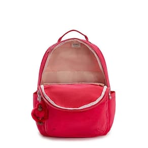 Mochila Kipling Seoul True Pink Na medida certa para te acompanhar, a Mochila Kipling Seoul True Pink protege seus objetos e deixa tudo sempre organizado com seu amplo espaço interno. Produzida em material resistente, o modelo é perfeito para todos os estilos, sendo um item indispensável para quem quer praticidade, tendo os seus pertences sempre à mão com conforto e segurança.Ideal para o dia a dia, leve e resistente e combina com vários ambientes como, escola, academia, trabalho seja aonde for tenha praticidade para transportar seus objetos._________________________Mais detalhes sobre o produto:Mochila Kipling Seoul - True Pink O tamanho grande da Seoul te permite guardar não só um laptop, como todo o restante que você precisa. 4 compartimentos principais, 3 zíperes frontais e 2 bolsos laterais fazem com que seja perfeita para levar todo o necessário para estudos ou trabalho. A alça superior e alças de mochila também te dão conforto e facilidade para transportá-la.Tamanho GrandeModelo SeoulCategoria Dia a Dia, EscolarLitragem 27 LDimensões 44cm x 35cm x 20.5cmPeso 640g