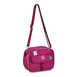 Com zíper bicolor, cadarços logados acetinados, pins de metal e etiqueta de borracha, ela é ideal para manter seus lanches sempre frescos.