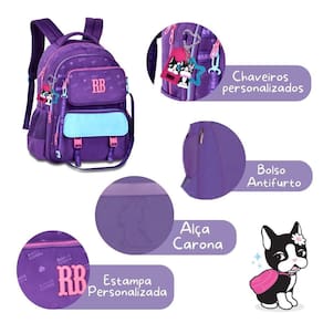 Um kit delicado, moderno e extremamente prático A Mochila RB26227 combina perfeitamente com a Lancheira RB26228 e o estojo box RB26226, criando um kit completo para quem busca organização e estilo. A mochila Rebecca Bonbon RB26227 é produzida em material soft de alta qualidade, possui silk exclusivo, detalhes refinados e zíperes coloridos que deixam o visual ainda mais moderno. O cadarço acetinado logado adiciona um charme fashion característico da marca. Seu compartimento principal é amplo, com divisórias especializadas para notebook e tablet, garantindo proteção e fácil acesso aos eletrônicos. Na parte frontal, conta com bolsos adicionais para manter tudo sempre organizado. O grande diferencial deste modelo: um dos bolsos frontais é removível e se transforma em uma pochete funcional, trazendo o conceito 2 em 1 que é tendência e superprático Além disso, a mochila possui: Chaveiro exclusivo Rebecca Bonbon, Bolsos telados nas laterais para garrafas, Bolso antifurto para objetos importantes, Alça carona para uso em malas de viagem, Alças de costas confortáveis, acolchoadas e ajustáveis, Estampa personalizada e exclusiva Rebecca Bonbon . Dimensões aproximadas: 44 x 33 x 14 cm. Estojo Box RB26226 - Compacto, funcional e superespaçoso O modelo RB26226 é perfeito para quem prefere um estojo box estruturado, prático e com ótima capacidade. Fabricado em material soft com silk exclusivo, cadarço logado e zíperes coloridos. Destaques do estojo: 36 elásticos internos para organizar lápis, Acompanha estojo interno separado, fechado por zíper, Formato resistente tipo box. Dimensões: 22 16 6 cm A lancheira RB26228 é confeccionada em material resistente, com revestimento térmico que mantém os alimentos na temperatura ideal. Possui compartimento principal espaçoso e mais dois bolsos frontais, todos com fechamento por zíper, além de bolsinhos telados nas laterais. Seu grande diferencial são as alças versáteis: pode ser Utilizado como mochilinha nas costas, no ombro com a alça transversal ou pela alça superior de mão, garantindo praticidade e conforto no dia a dia. Dimensões aproximadas: 27x20x12cm. Ótimo para estudantes que precisam de organização inteligente, sem abrir mão do estilo Rebecca Bonbon.