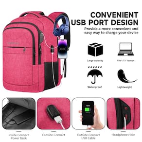 Mochila Lapsouno Extra Large para laptop de viagem de 17,3 polegadas rosa