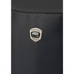 Entre os detalhes de acabamento estão o logo frontal em metal, zíperes personalizados da marca, alça de mão com cabo de aço interno, que proporciona mais resistência no transporte, e alça carona, perfeita para acoplar a mochila em malas de viagem com praticidade.