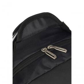 Confeccionada em poliéster resistente, é compatível com notebooks de até 18 polegadas. Possui um compartimento principal espaçoso, bolso frontal com zíper para itens de acesso rápido e organizador interno, ideal para manter pequenos objetos em ordem. O logo em metal confere um toque de sofisticação, enquanto os zíperes personalizados reforçam a identidade da marca.