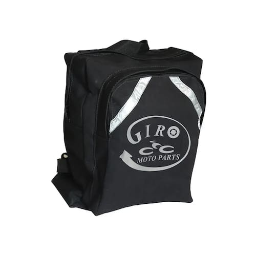 Loja Oficial Giro Moto Parts A Mochila reforçada da Giro Moto Parts by Piracapas é perfeita para viagens de moto ou para serviços de motoboy e entregas. Conta com 02 bolsos para carga, alça manual na parte superior, alças reforçadas, base emborrachada e faixas reletivas.Especificações:• Marca: Piracapas• Medidas: Largura: 35cm / Altura: 45cm / Profundidade: 18cm• Capacidade: 28 Litros• Tamanho: P• Material: Nylon impermeabilizado, Argolas frontais em ferro e abs reforçado, reforçada em lonaConteúdo da Embalagem:01- Mochila De Lona Entrega Motoqueiro Logo Giro Moto Parts Tamanho P Marca: Não Informado