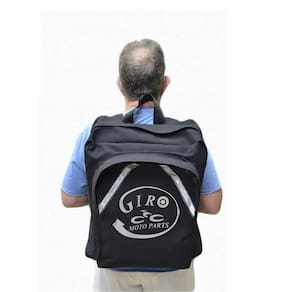 Loja Oficial Giro Moto Parts A Mochila reforçada da Giro Moto Parts by Piracapas é perfeita para viagens de moto ou para serviços de motoboy e entregas. Conta com 02 bolsos para carga, alça manual na parte superior, alças reforçadas, base emborrachada e faixas reletivas.Especificações:• Marca: Piracapas• Medidas: Largura: 38cm / Altura: 50cm / Profundidade: 19cm• Capacidade: 36 Litros• Tamanho: M• Material: Nylon impermeabilizado, Argolas frontais em ferro e abs reforçado, reforçada em lonaConteúdo da Embalagem:01- Mochila De Lona Entrega Motoqueiro Logo Giro Moto Parts Tamanho M