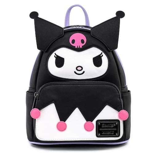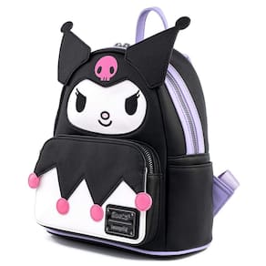 MINI MOCHILA COSPLAY SANRIO KUROMI Esta gracinha caótica é a líder de uma gangue de motociclistas que andam de triciclo e está aqui para reivindicar seu lugar na sua coleção Hello Kitty. Kuromi está em busca de aventuras ousadas e também de deliciosos petiscos. Traga Kuromi para sua coleção com esta mini mochila Kuromi Cosplay. Sua cauda na parte de trás da mochila se move. Esta bolsa é um produto oficialmente licenciado pela Sanrio. L: 9" X A: 10,5” X P: 4,5" • Mini mochila de couro sintético. • Detalhes em apliques, bordados e rebites metálicos. - Bolsa Sanrio oficialmente licenciada - couro sintético com detalhes em apliques, bordados e rebite de metal. - Alças de ombro ajustáveis. Alça de transporte superior. Interior totalmente forrado. - Bolsa de moda feminina para jovens e mulheres. Não se destina ao uso de crianças menores de 12 anos - Medidas: 9" W x 10.5" H x 4.5" D
