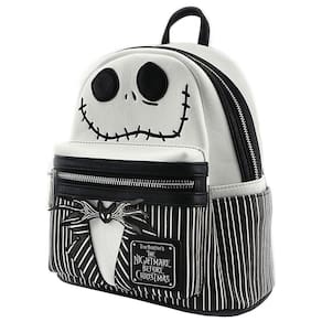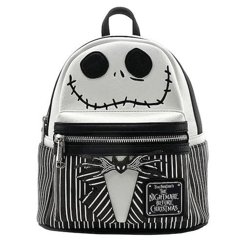 Mochila de couro sintético Loungefly x The Nightmare Before Christmas Jack Cosplay (tamanho único, preta) — MINIMOCHILA DE COURO SINTÉTICO COM DETALHES ESTAMPADOS, BORDADOS E APLIQUES — Produto oficialmente licenciado pela Nigthmare Before Christmas — Design detalhado de rosto e smoking — Jack, personagem de Night Before Christmas