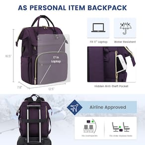 Esta mochila feminina elegante e prática para laptop é perfeita para profissionais, faculdades e viajantes. Possui um compartimento principal de ampla abertura que pode caber itens essenciais como pastas A4 e um laptop de até 17 polegadas, além de 18 bolsos organizados para fácil acesso a itens menores. Aprimorada com medidas de segurança, inclui um bolso oculto antirroubo e uma porta de carregamento USB (carregador portátil não incluído). O conforto é priorizado com alças de ombro grossas e uma alça de bagagem prática para facilitar a fixação da mala, tornando-a ideal para viagens de negócios ou uso diário. O design chique e o layout funcional fazem dela um excelente presente para mulheres que apreciam uma mistura de estilo e eficiência em seus acessórios. - Mochila feminina grande para laptop: possui um design de ampla abertura para acesso rápido e fácil. O compartimento principal é espaçoso o suficiente para guardar itens essenciais, como pastas A4, revistas e acessórios técnicos, tornando-o perfeito para o trabalho diário ou necessidades universitárias. A capa para laptop acomoda um laptop de até 17,3 polegadas. - Bem organizada: equipada com 18 bolsos, esta mochila feminina oferece armazenamento organizado para vários itens. O compartimento frontal é ideal para proteger itens menores e utilizados com frequência, como um laptop, artigos de papelaria ou itens essenciais, mantendo tudo organizado. - Mochila de viagem para laptop sem preocupações: possui um bolso oculto antirroubo para proteger itens valiosos como carteiras e telefones contra roubo. A porta de carregamento USB integrada permite que você carregue dispositivos eletrônicos em movimento, mantendo você conectado (carregador portátil não incluído). - Design conveniente: as alças de ombro são feitas com esponja grossa e tecido de malha respirável para reduzir a carga e aumentar o conforto. O design da alça de bagagem permite que a mochila seja facilmente montada em uma mala, tornando-a a companhia perfeita para viagens de negócios e viagens. - Multiuso: seja para profissionais, universitários ou viajantes de viagens curtas, esta mochila lovevook atende a várias necessidades. É especialmente adequada para profissões como professores e enfermeiros que precisam carregar muitos itens.