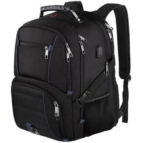 Mochila masculina adulto extra grande de 50 L para viagem, bolsa para computador com porta de carregamento USB, resistente à TSA, durável, grande, RFID, resistente, para laptops de 43 cm para homens e mulheres - Mochila masculina adulta de grande capacidade e organizada: a mochila masculina RFID para viagem e trabalho possui 20 bolsos independentes para armazenamento grande e organização de itens pequenos. 3 compartimentos principais espaçosos com muitos bolsos ocultos podem acomodar muitas coisas como suprimentos, acessórios de viagem, roupas, artigos de papelaria, organizador de cabos, bolso lateral profundo com zíper para itens essenciais de fácil acesso, bolsos laterais elásticos de rede armazenam convenientemente guarda-chuvas de viagem ou garrafas de água. - Mochila masculina adulta amigável para TSA e multiuso: a característica amigável à TSA, projetada exclusivamente para viagens de avião, faz com que ela passe pela segurança do aeroporto de forma rápida e fácil ao deitar o laptop sem removê-lo da bolsa. A elegante mochila para computador com carregamento USB de grande capacidade é uma ótima companhia para atividades ao ar livre/interno e para uso diário em qualquer lugar para acampamento, caminhadas, férias, viagens, caminhadas, montanhismo, escapadelas de fim de semana, viagens ocasionais, viagens noturnas - Mochila masculina adulta, porta USB e orifício para fones de ouvido: porta de carregamento USB externa com cabo de carregamento integrado para carregar facilmente seu smartphone, Kindle e outros dispositivos eletrônicos em movimento (é necessário um carregador portátil e não incluído nesta mochila de viagem). O conector de fone de ouvido é conveniente para você ouvir músicas favoritas enquanto caminha - Mochila masculina adulta Material durável e sólida: feita de tecido de poliéster durável com zíperes resistentes à prova d'água bidirecionais em toda a mochila de viagem são convenientes para operar em qualquer lado que você preferir, para um uso seguro e duradouro todos os dias/fins de semana. Uma alça robusta com cabo de aço na parte superior para facilitar o transporte, as alças de compressão laterais mantêm a mochila de viagem elegante e versátil no tamanho que você precisar - Mochila masculina adulta confortável: mochila tecnológica com design de ventilação tridimensional em forma de U nas costas ajuda na convecção de ar, ventilação e eliminação de calor. Alças de ombro largas e respiráveis confortáveis com almofada de esponja abundante ajudam a aliviar o desconforto do seu ombro. Ambos os lados da alça de ombro com design de cordão, pode pendurar óculos de sol e outros pingentes pequenos. Mochilas premium para homens e também para mulheres. E é um presente ideal para homens e mulheres