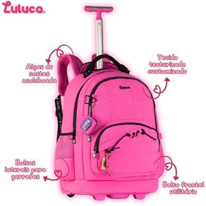 Mochila Luluca De Rodinhas Escolar Mala Viagem Meninas Rosa