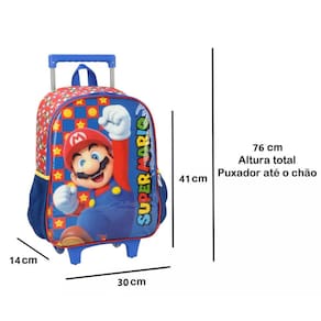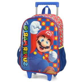 Mochila Mario Bros de Rodinhas Infantil Azul Meninos Escolar