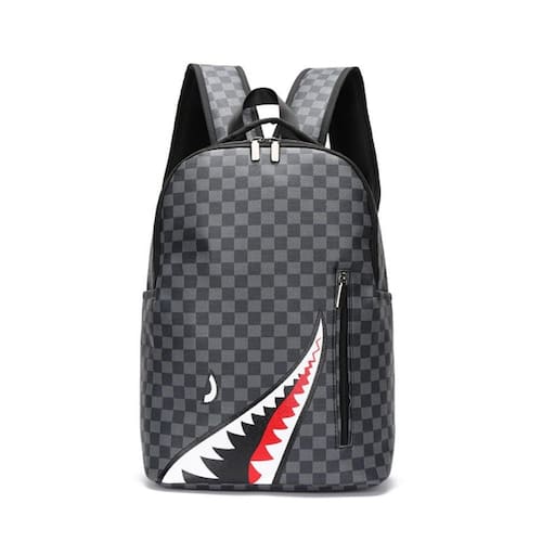 Mochila tubarão boca de tubarão bolsa de viagem moderna xadrez mochila escolar estudantil tendência urbana bolsa tubarão Material: PU desempenho do produto PU tecido liso de alta densidade é forte e resistente ao desgaste. Toda a bolsa é elegante e leve. A alça de ombro ajustável pode ser ajustada ao seu comprimento confortável à vontade. O design da alça de ombro alargada e respirável pode aliviar a pressão nas costas e proteger os ombros. Uma alça de ombro está equipada com uma correia para pendurar óculos. Grande capacidade: 39 x 16 x 27 cm. Personalidade da moda, combinação clássica. Pode satisfazer o estilo urbano e também é muito prática. É adequada para várias ocasiões. É um item essencial para criadores de tendências da moda. É uma mochila discreta, luxuosa e significativa.