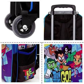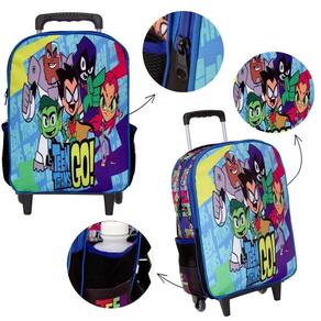 Kit Mochila Escolar Infantil Jovens Titãs Rodinhas, acompanha lancheira e estojo. Possui alça de mão reforçada. Agora você pode levar sua mochila no seu dia a dia ou acompanhar você na escola. Sua abertura maior se dá por zíper com puxador. Na parte de dentro possui amplo espaço para a guardar diversos materiais como cadernos, livros e estojos. Na parte da frente, possui bolso com zíper para a guardar pertences de menor tamanho e bolsos laterais.