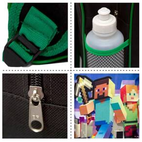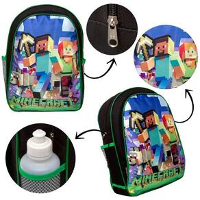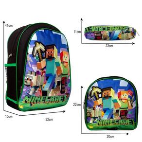 Kit Mochila Escolar Infantil Minecraft, acompanha lancheira e estojo. Possui alça de mão reforçada. Agora você pode levar sua mochila no seu dia a dia ou acompanhar você na escola. Sua abertura maior se dá por zíper com puxador. Na parte de dentro possui amplo espaço para a guardar diversos materiais como cadernos, livros e estojos. Na parte da frente, possui bolso com zíper para a guardar pertences de menor tamanho e bolsos laterais.