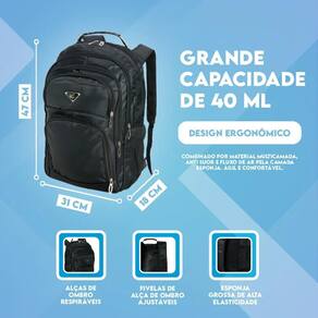 Mochila Escolar Universitária Sport Super Resistente, Própria para Motoboy, Motoqueiro, Entregador, Viajante, Viagem, Espaçosa e Confortável. Compartimento para Notebook 15 POL Ideal para: Faculdade, Escola, Trabalho, Viagens. DESCRIÇÃO: -mochila Reforçada para Universidade, Escola, Trabalho, Viagens. -compartimento para Notebook de 15 Polegadas. -3 compartimentos. -2 bolsos laterias. -medidas aproximadas -altura 48 cm -largura 30 cm -profundidade 20 cm. OBSERVAÇÕES 1- A garrafa não acompanha o produto, é meramente ilustrativa. 2- O Notebook não acompanha o produto, é meramente ilustrativo. 3- O emblema da mochila e o formato do zíper podem variar, dependendo de nosso fornecedor. As características principais como Cor Preta , 3 compartimentos com zíper, 2 bolsos laterais, Cabo de aço, e compartimento interno para Notebook sempre serão iguais. do vendedor: 2 meses