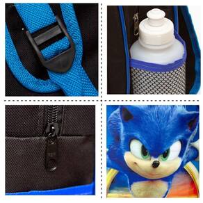 Kit Mochila Escolar Infantil Sonic, acompanha lancheira e estojo. Possui alça de mão reforçada. Agora você pode levar sua mochila no seu dia a dia ou acompanhar você na escola. Sua abertura maior se dá por zíper com puxador. Na parte de dentro possui amplo espaço para a guardar diversos materiais como cadernos, livros e estojos. Na parte da frente, possui bolso com zíper para a guardar pertences de menor tamanho e bolsos laterais.
