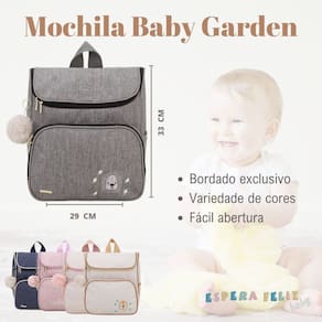 - Amplo espaço interno - Bolso frontal com zíper - Dois bolsos laterais - Bordado personalizado - Alças reguláveis - Chaveiro de pompom - Fácil de limpar - Produto com ótima qualidade - Fabricado no Brasil - Feitas com dedicação e cuidado para o seu bebê - Perfeitas para todas as ocasiões e fases do seu bebê.