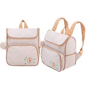 - Amplo espaço interno - Bolso frontal com zíper - Dois bolsos laterais - Bordado personalizado - Alças reguláveis - Chaveiro de pompom - Fácil de limpar - Produto com ótima qualidade - Fabricado no Brasil - Feitas com dedicação e cuidado para o seu bebê - Perfeitas para todas as ocasiões e fases do seu bebê.
