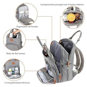 Mochila Maternidade Kyara Cinza Claro - Laço Bebê Um equilíbrio artístico entre moda e funcionalidade, a Mochila Maternidade Kyara Cinza Claro da Laço Bebê foi projetada pensando na praticidade para as mamães Possui 2 compartimentos grandes, sendo um deles com abertura extra facilitando encontrar os itens e 20 bolsos (12 internos + 8 externos) sendo dois deles com isolamento térmico, ideal para manter a temperatura da mamadeira. Acompanha um trocador de fraldas, medindo 55cm x 36cm, facilitando a troca do bebê em uma superfície higiênica e macia, onde quer que esteja. É confeccionada com tecido leve, durável e impermeável (mais forte do que a bolsa de bebê de poliéster de sarja, melhor em resistência à deformação e resistência ao rasgo). Costura que não desfia e zíperes fortes, e costuras reforçadas nas alças O interior de nossa mochila maternidade Kyara inclui um bolso acolchoado para laptop e tablet, organizadores de bolso de malha e outros itens essenciais de organização. Mantenha a temperatura de suas mamadeiras nos bolsos isolados, nunca perca suas chaves e carteira no bolso da mamãe e rapidamente pegue uma fralda do organizador de fraldas de malha. A abertura extra larga torna fácil de encontrar o essencial em um aperto e conta com zíperes duplos para fácil acesso e fechamento mesmo com uma mão Alça fácil de agarrar e design ergonômico nas costas e alças de ombro acolchoadas espessas oferecem um transporte confortável e de reforço de força. Com alças acolchoadas fácil de segurar e design ergonômico nas costa, oferecem um transporte confortável. Pode ser usada como mochila, bolsa, também pode ser pendurada no carrinho. Elegante e adequada para muitas ocasiões como fazer compras, viajar, etc. Além disso, o design prático e unissex torna a mochila maternidade Kyara da Laço Bebê perfeita para viajar com seus meninos e meninas, um presente ideal para o chá de bebê A Mochila de Maternidade Kyara da Laço Bebê tem compartimento térmico, trocador de fralda, material resistente, leve e impermeável, alças acolchoadas e com adaptador para prender ao carrinho do bebê.CARACTERÍSTICAS:Pode ser pendurada no carrinho;Bolso acolchoado para laptop e tablet;2 compartimentos grandes;Material extremamente resistente e impermeável;Alças acolchodas com extremo conforto;20 bolsos (12 internos e 8 externos), sendo 2 com isolamento térmico;Composição: 100% poliéster - tecido durável, leve e resistente a água;Acompanha alças adaptadoras para prender a mochila no carrinho;Dimensão aproximada: 40cm x 30cm x 20cm.ATENÇÃOPara evitar que o carrinho tombe: Retire a mochila do carrinho antes de retirar o seu filho.CONTÉM:1 mochila de Maternidade Kyara Cinza Claro Laço Bebê;1 Trocador de fraldas 55cm x 36cm.