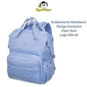 Mochila Maternidade Tigor T Tigre Little Shine Matelassê Azul Bebê Bolsos Laterais Internos Externos Confortável Resistente